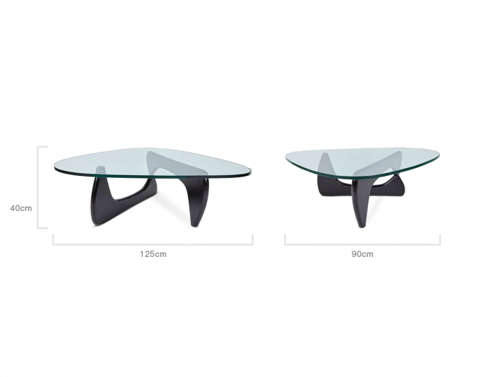 Designer Mid-Century Style Tribeca Glass Top Coffee Table | Black Wood