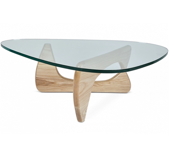 Designer Mid-Century Style Tribeca Glass Coffee Table | Natural Wood