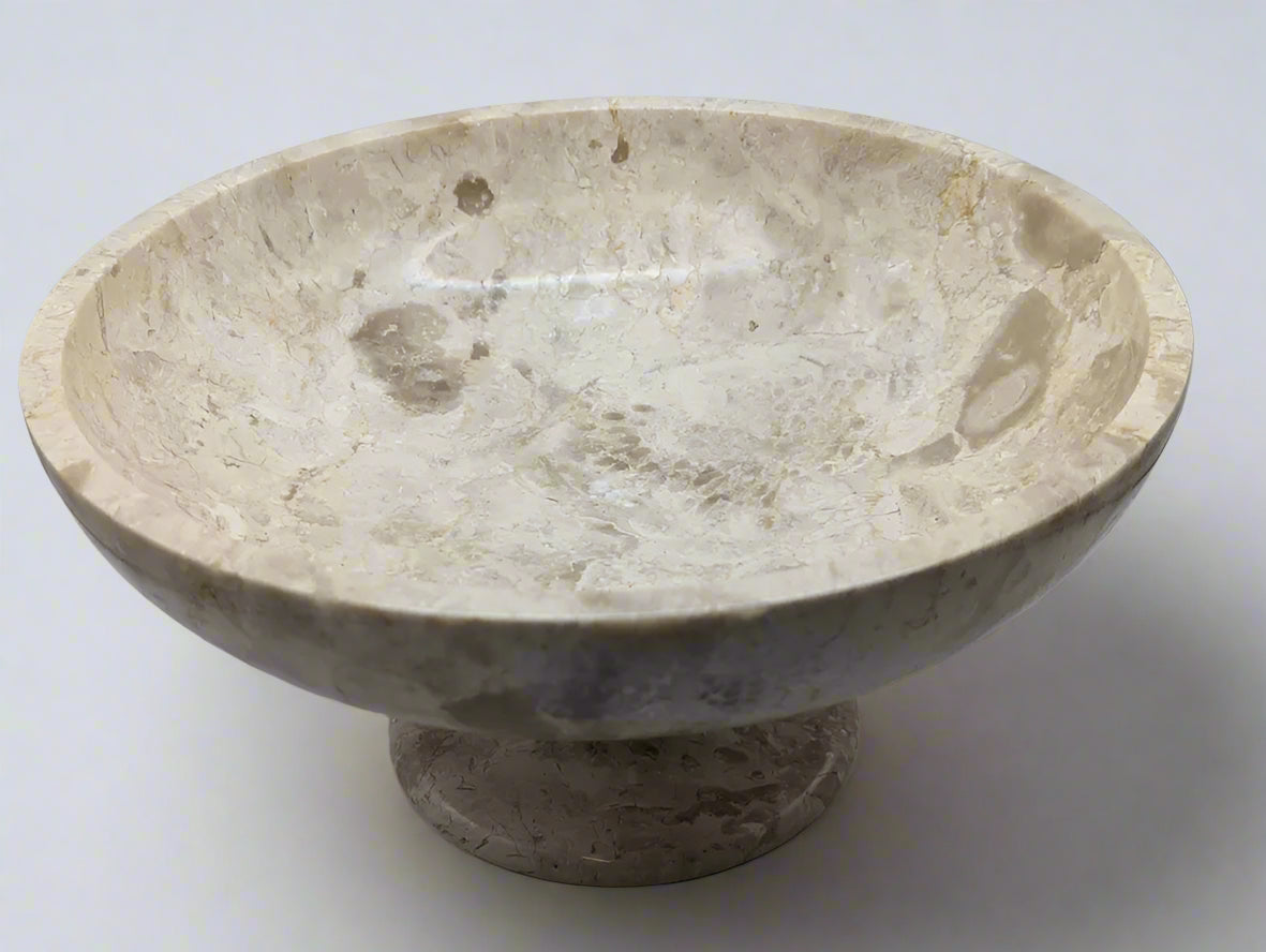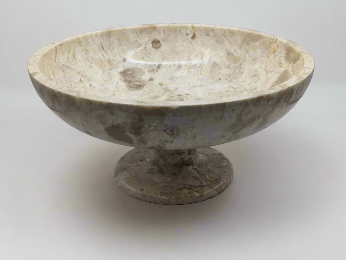 Vintage Marble Pedestal Fruit Bowl – Elegant Stone Centrepiece for Timeless Interiors