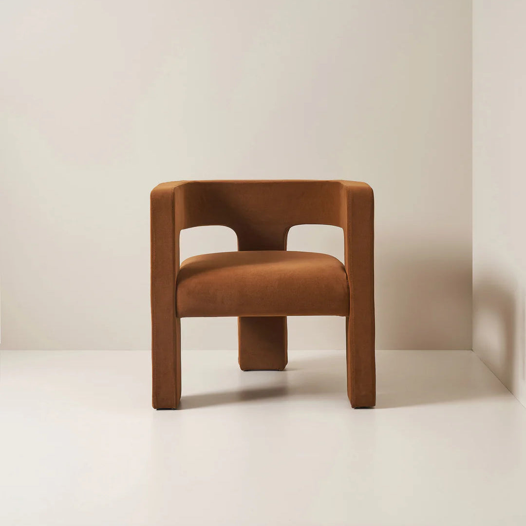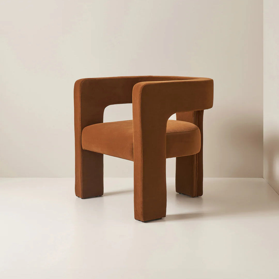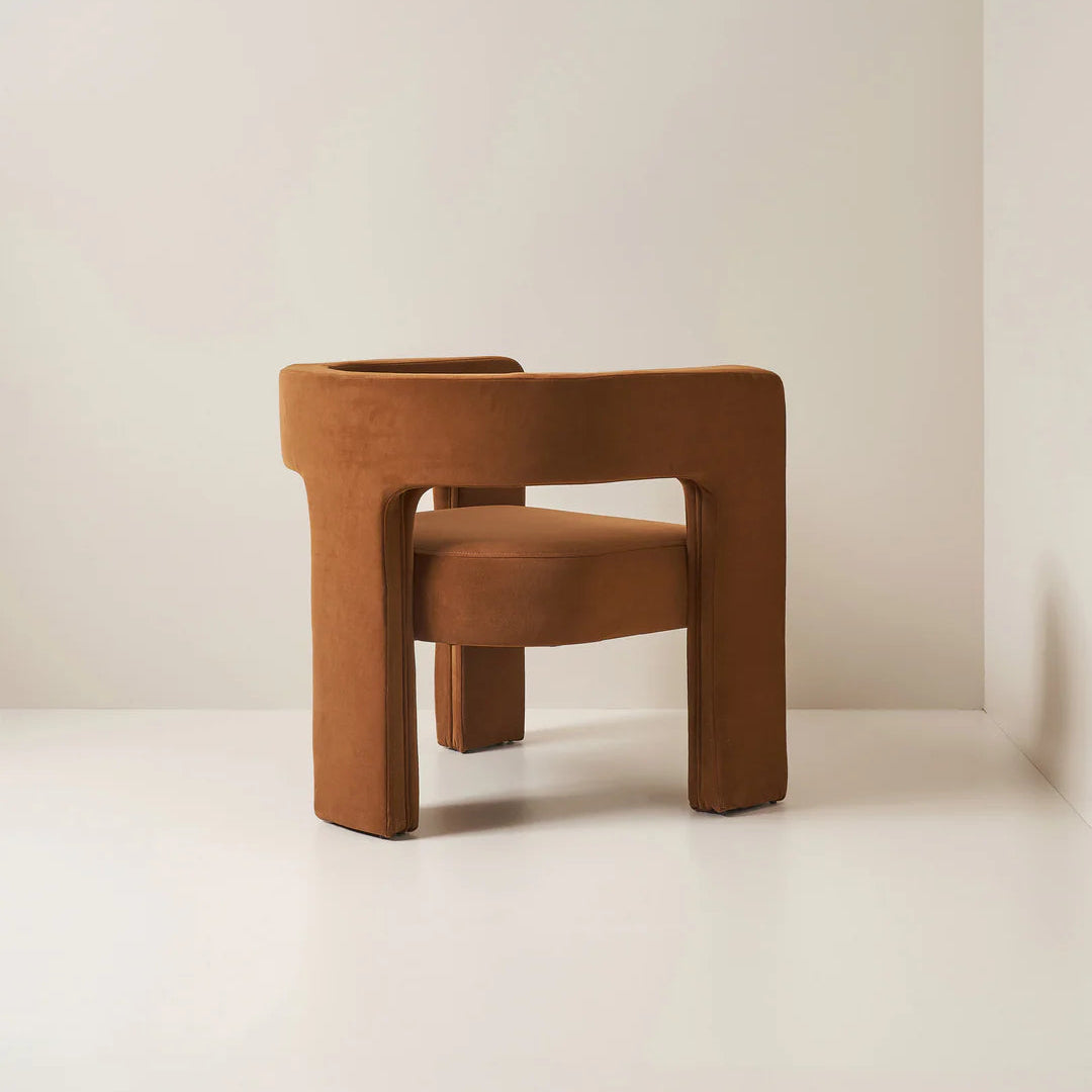 Upholstered in sumptuous velvet, the Hannah Lounge Chair is available in a variety of rich, handpicked colours, ensuring it complements any contemporary living room, bedroom, or boutique hotel setting. Its refined curves, plush upholstery, and structured silhouette make it an instant focal point in any interior.