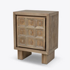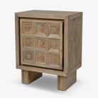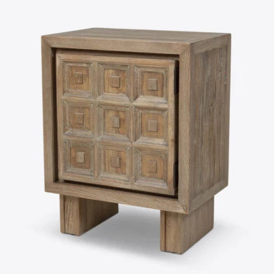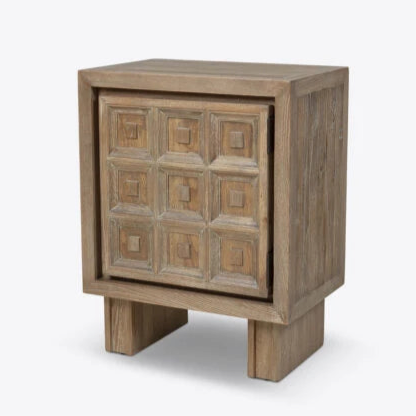 Inspired by Brutalist designs of the mid 20th century, our Noah bedsides feature carved elm panels to the door.