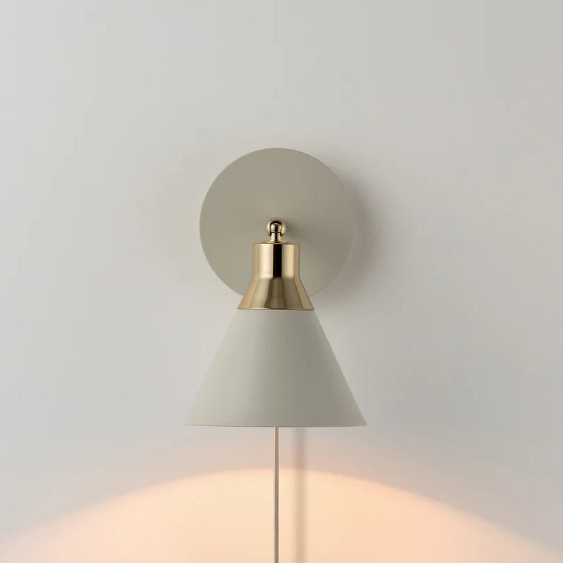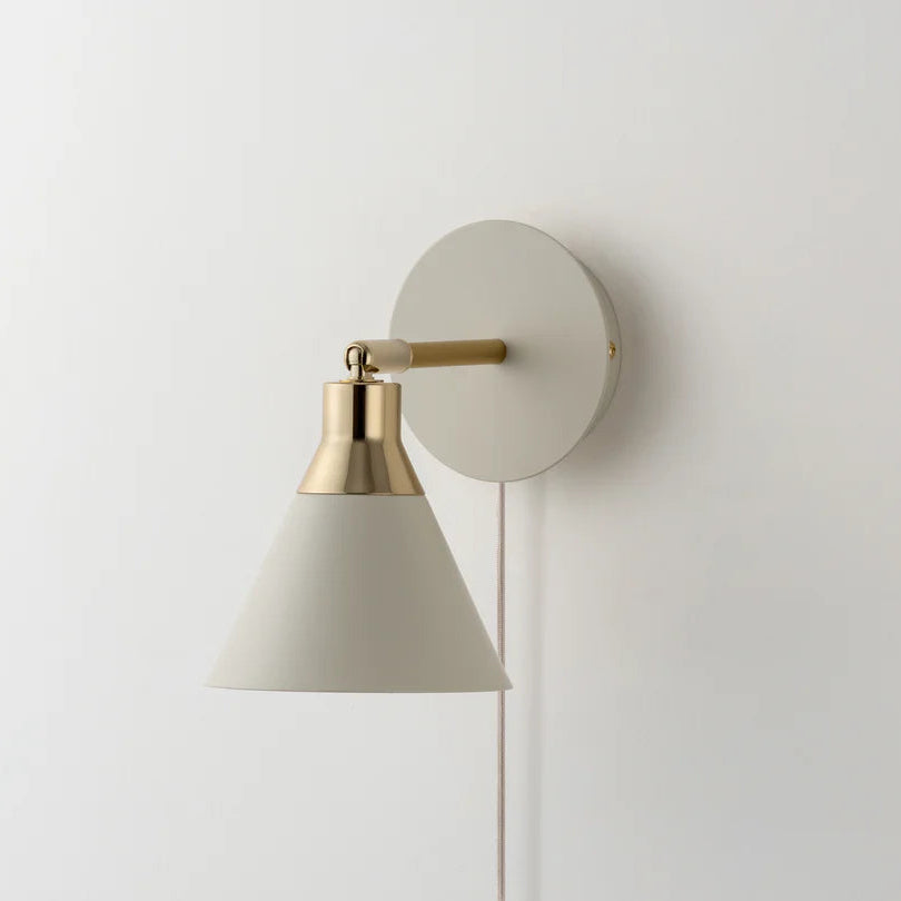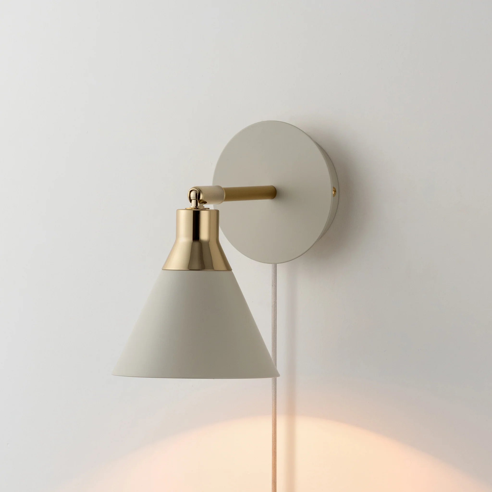 Metal Sand Grey & Brass Cone Plug-In Wall Light | Unique Lighting for Bedside & Reading Nooks