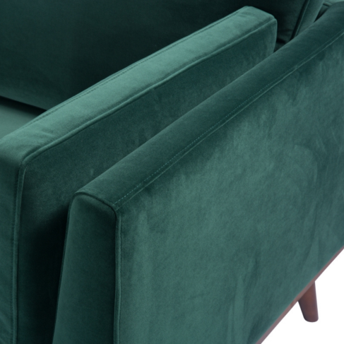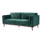 Mickey 3 Seat Velvet Sofa with Walnut Legs in Green