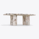 Crafted from high-quality elephant white solid marble, this table showcases an eye-catching pattern that adds depth and character to any room.