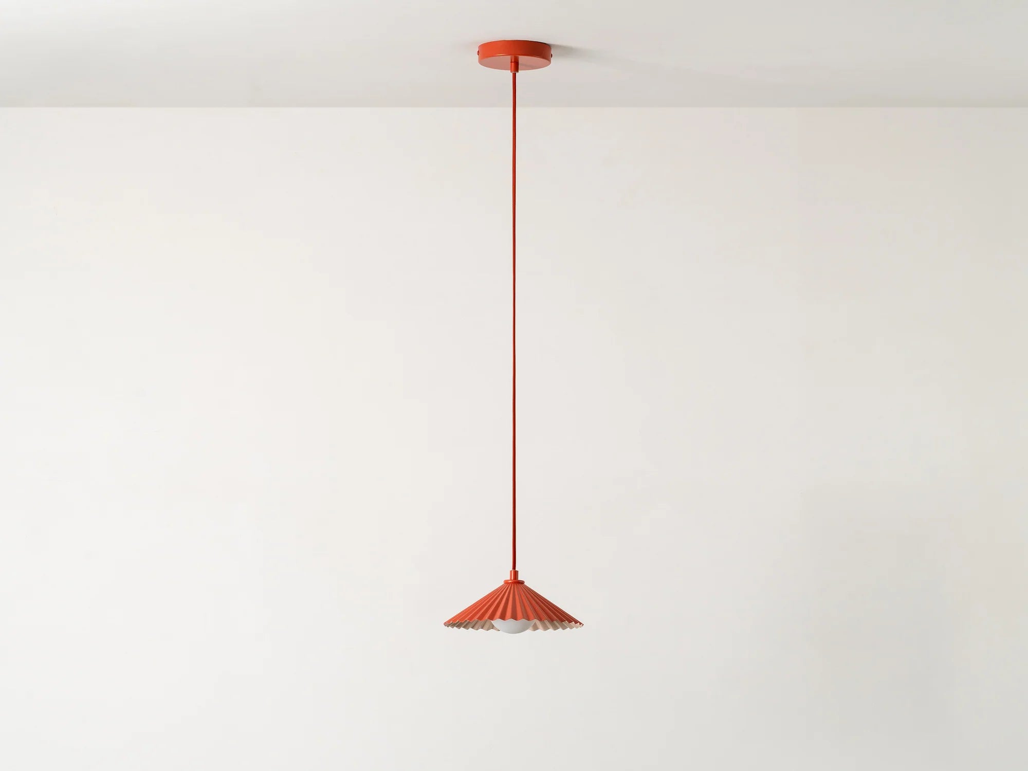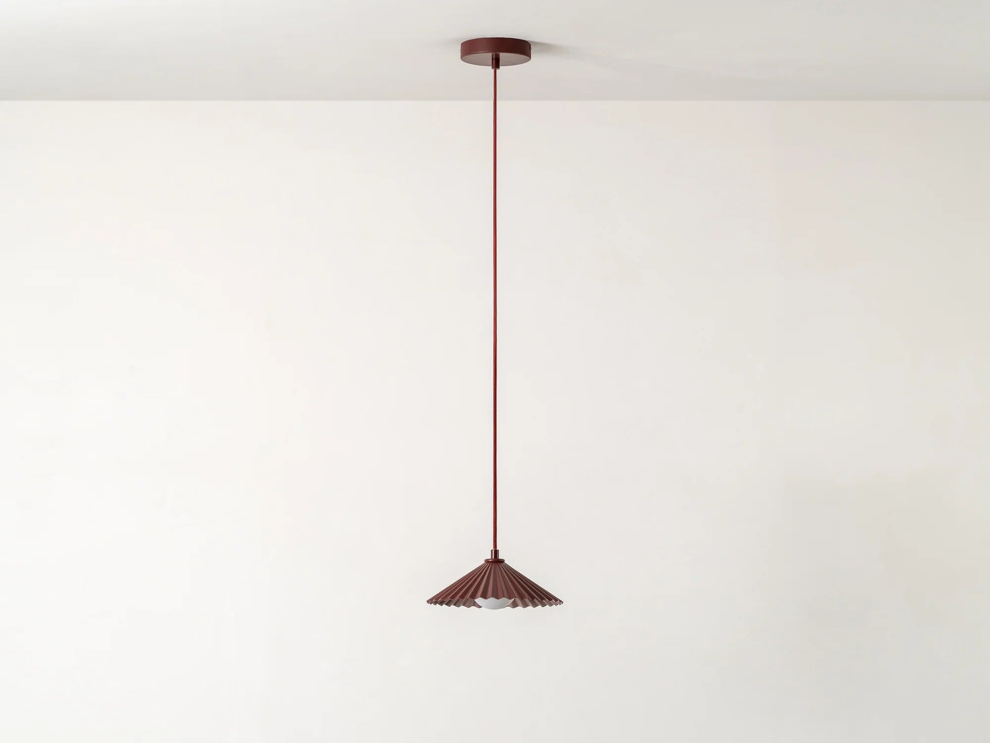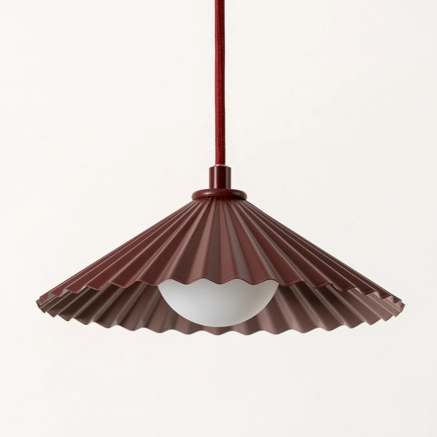 Part of the Pleat range, this pendant embodies Emma Gurner’s signature design aesthetic—a seamless fusion of vintage-inspired texture and contemporary colour palettes. The pleated shade introduces depth and dimension, while its warm burgundy tone makes it an elegant yet playful lighting choice for modern and mid-century interiors.