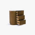 Ava Chest of Drawers – Natural Oak & Marble | Fluted 3 Drawer Storage Cabinet